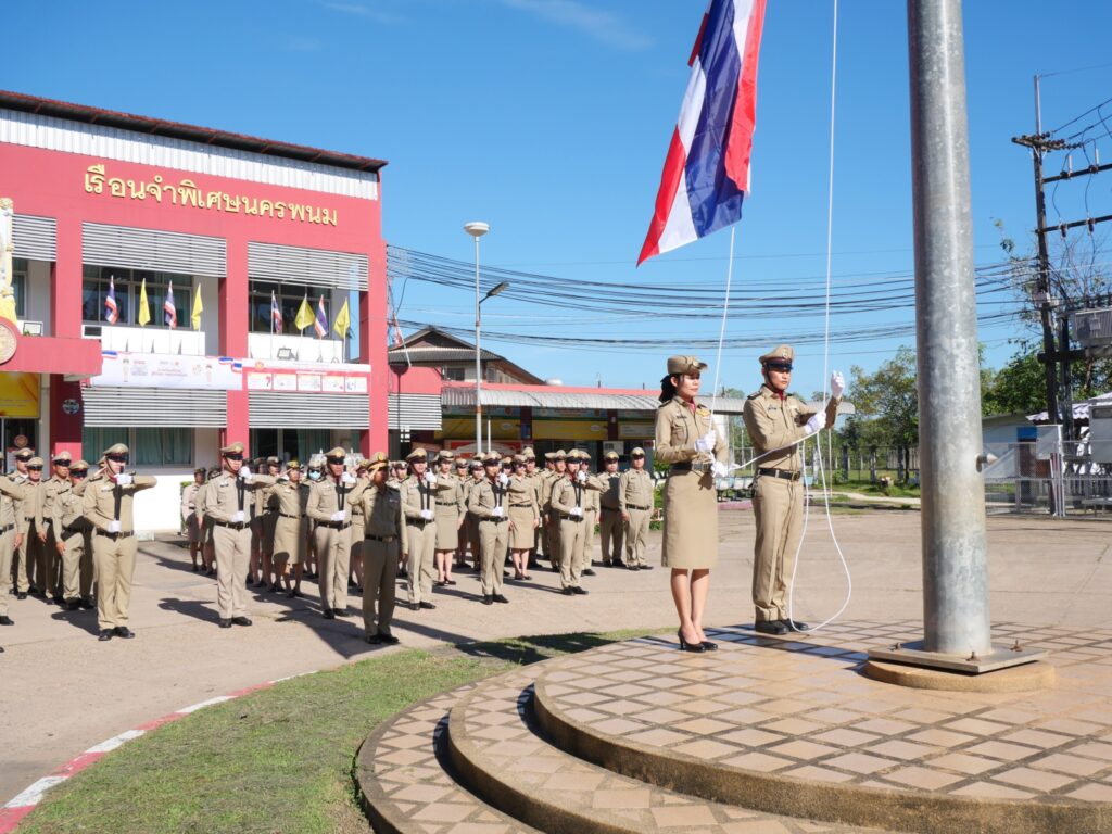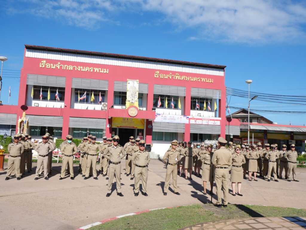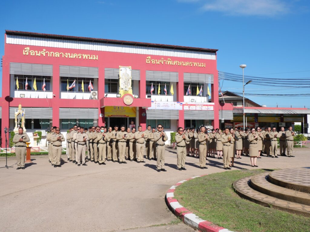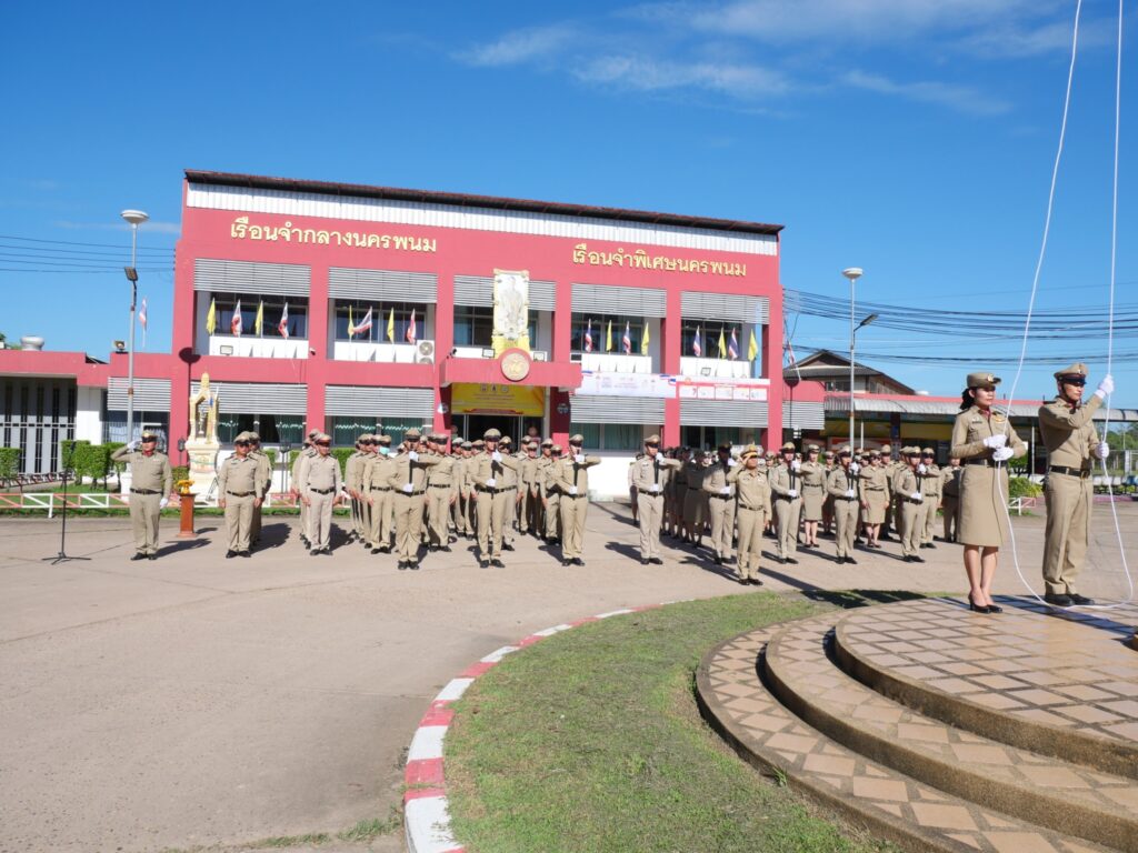 นายฉลาด อ่อนหัวโทน ผู้บัญชาการเรือนจำกลางนครพนม พร้อมด้วยข้าราชการ พนักงานราชการ และลูกจ้างในสังกัด ได้ร่วมกันเข้าแถวเคารพธงชาติไทย ณ บริเวณหน้าตึกอำนวยการเรือนจำกลางนครพนม